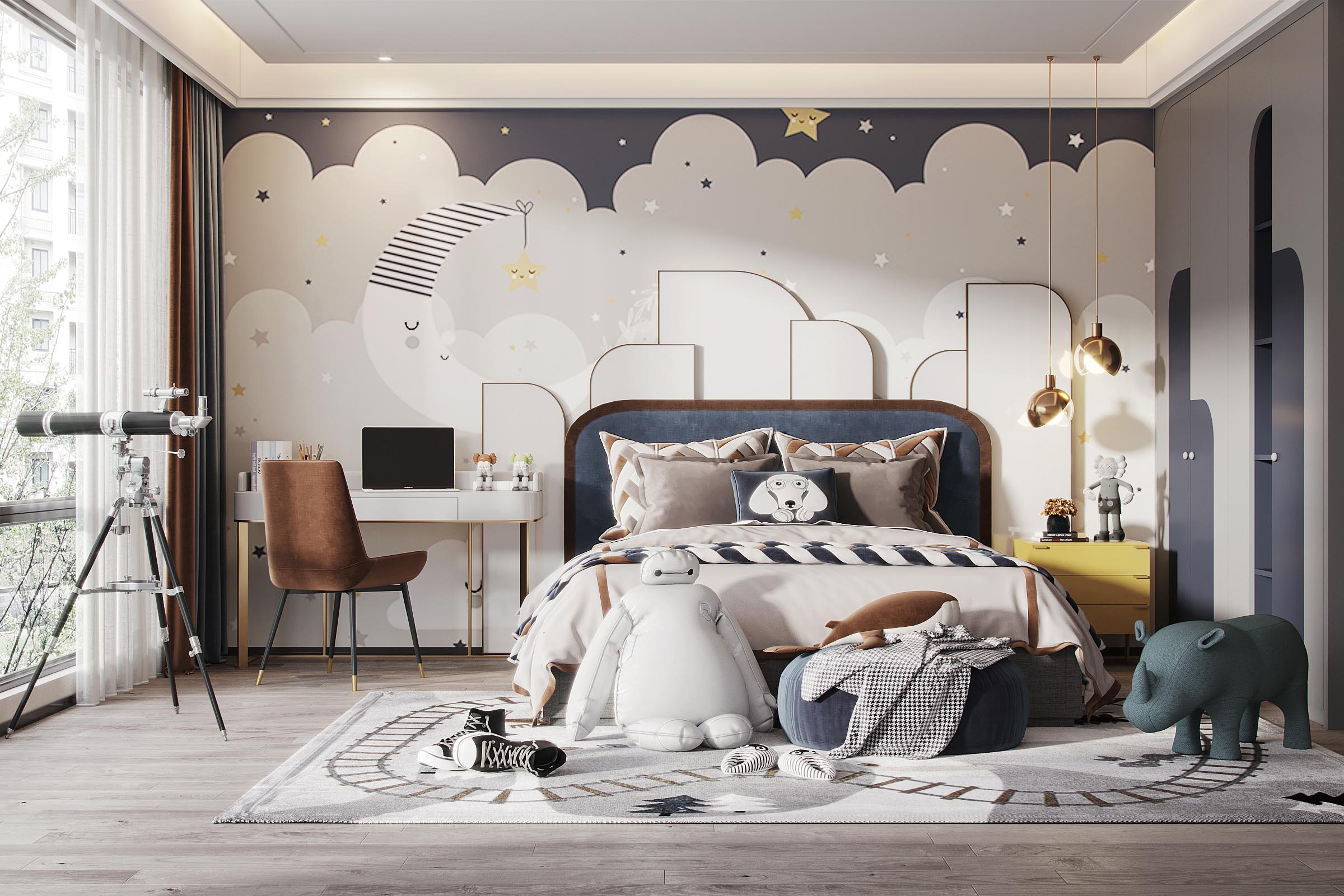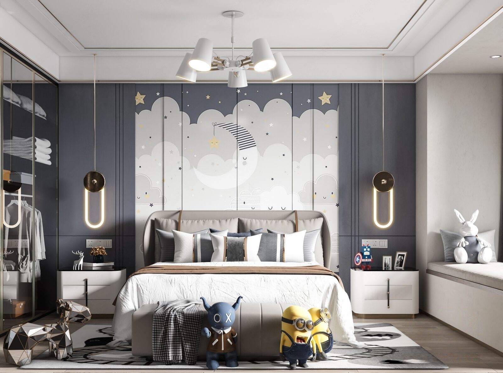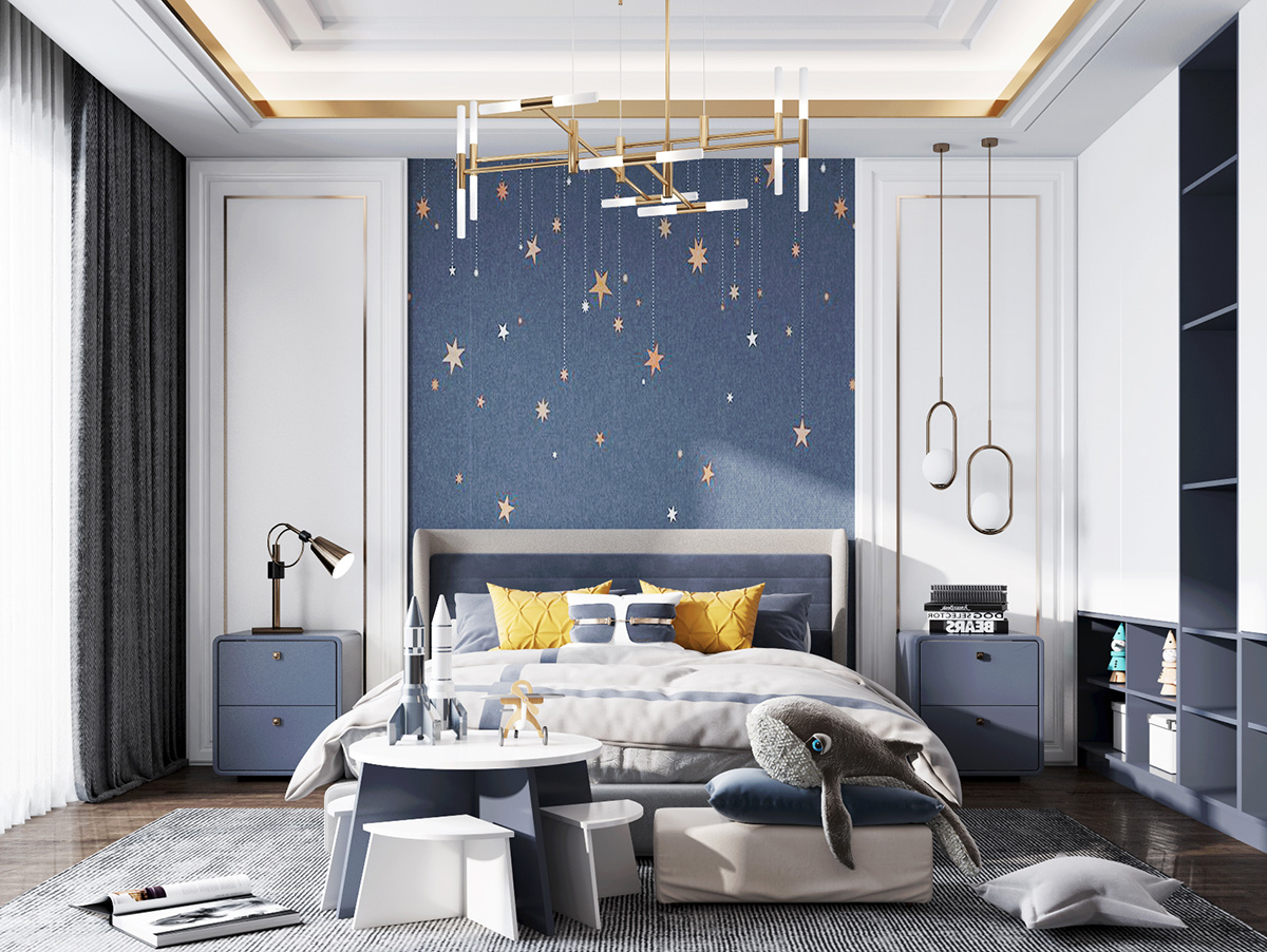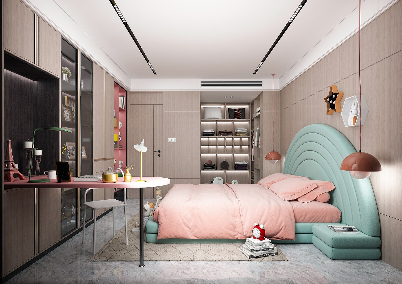 儿童房要有充足的照明,让房间内温暖明亮,这样才会让孩子更有安全感,房间内最好选择可调光的灯具。在选择灯具时,不要选择光线过于强烈的,色泽上要明亮不闪烁。