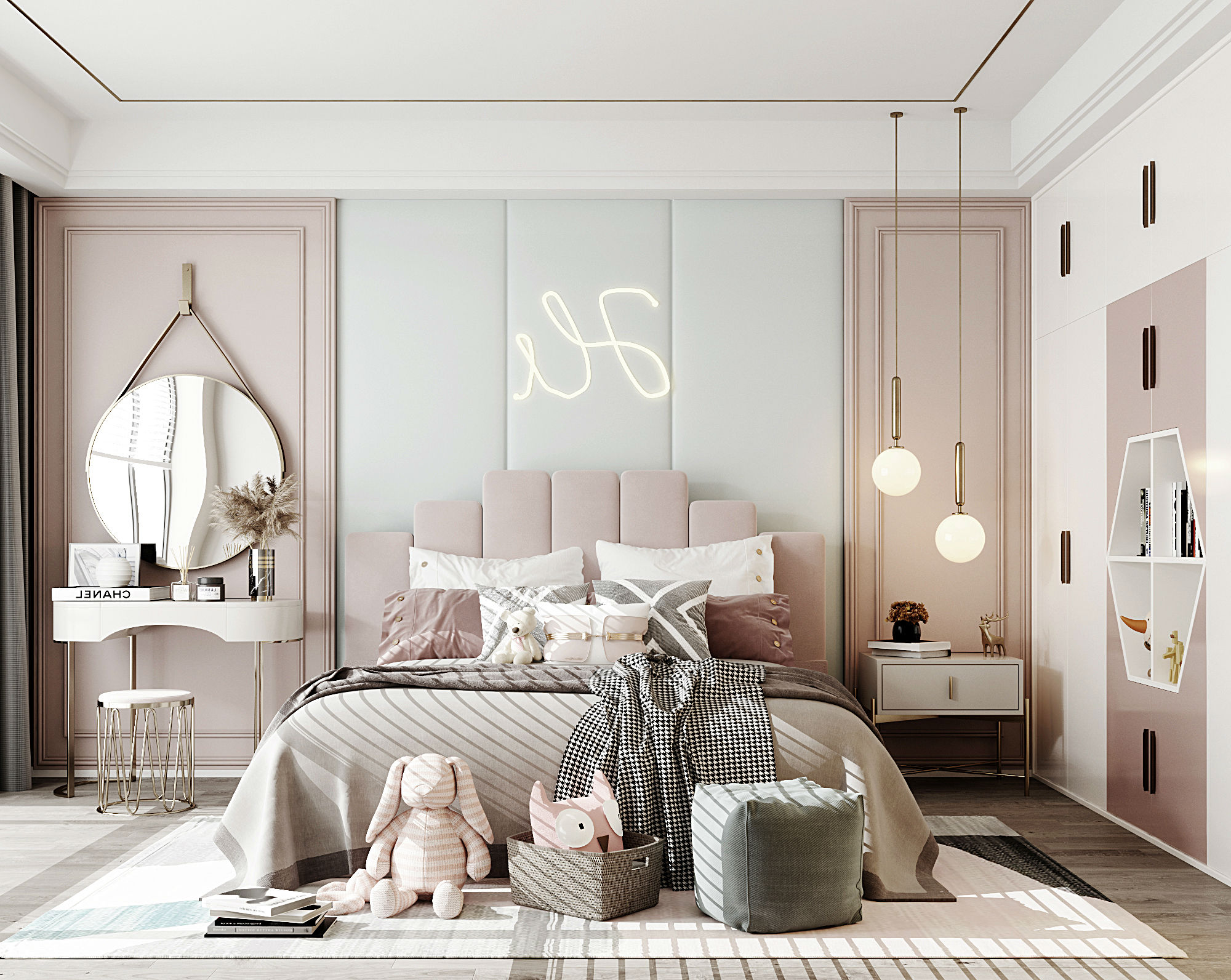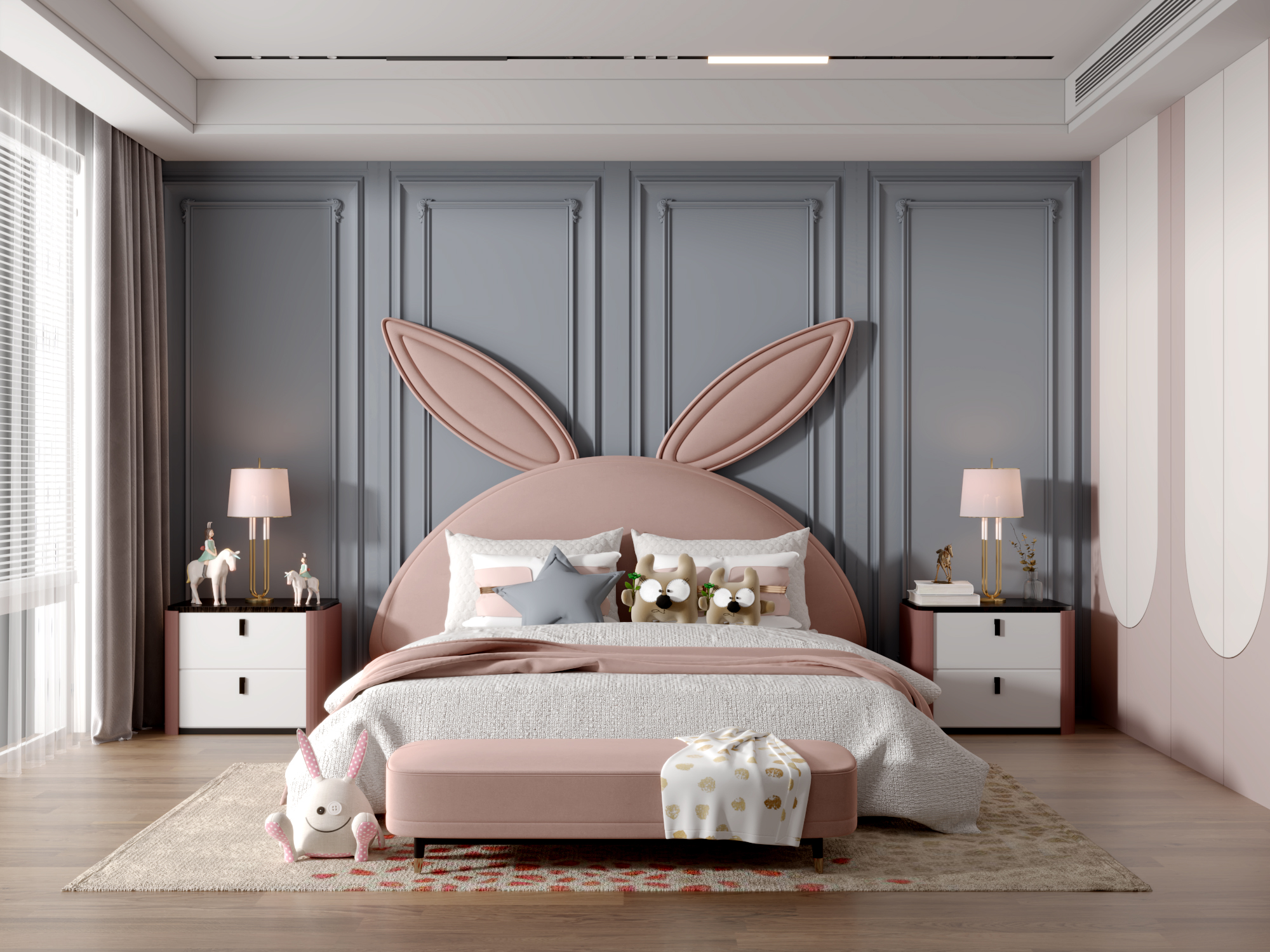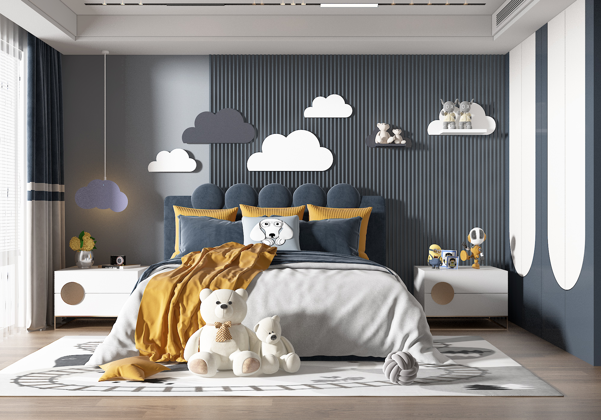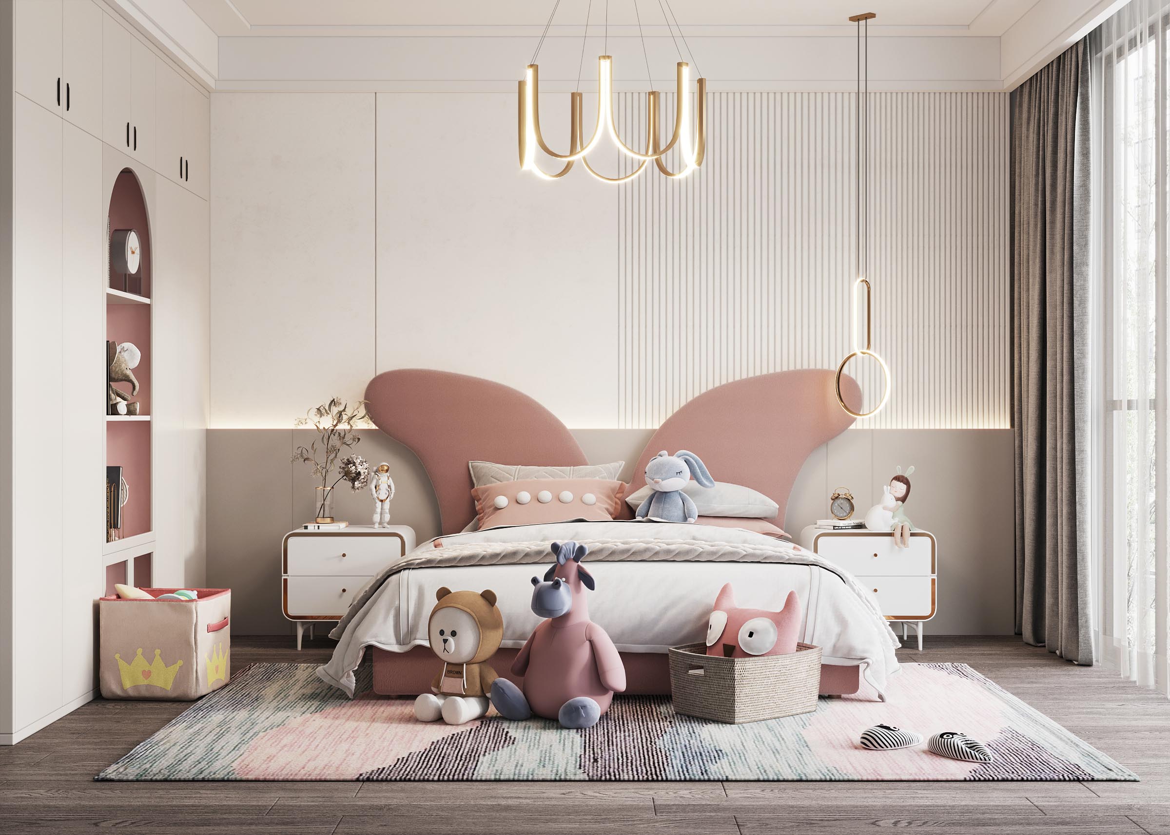 儿童房要有充足的照明,让房间内温暖明亮,这样才会让孩子更有安全感,房间内最好选择可调光的灯具。在选择灯具时,不要选择光线过于强烈的,色泽上要明亮不闪烁。